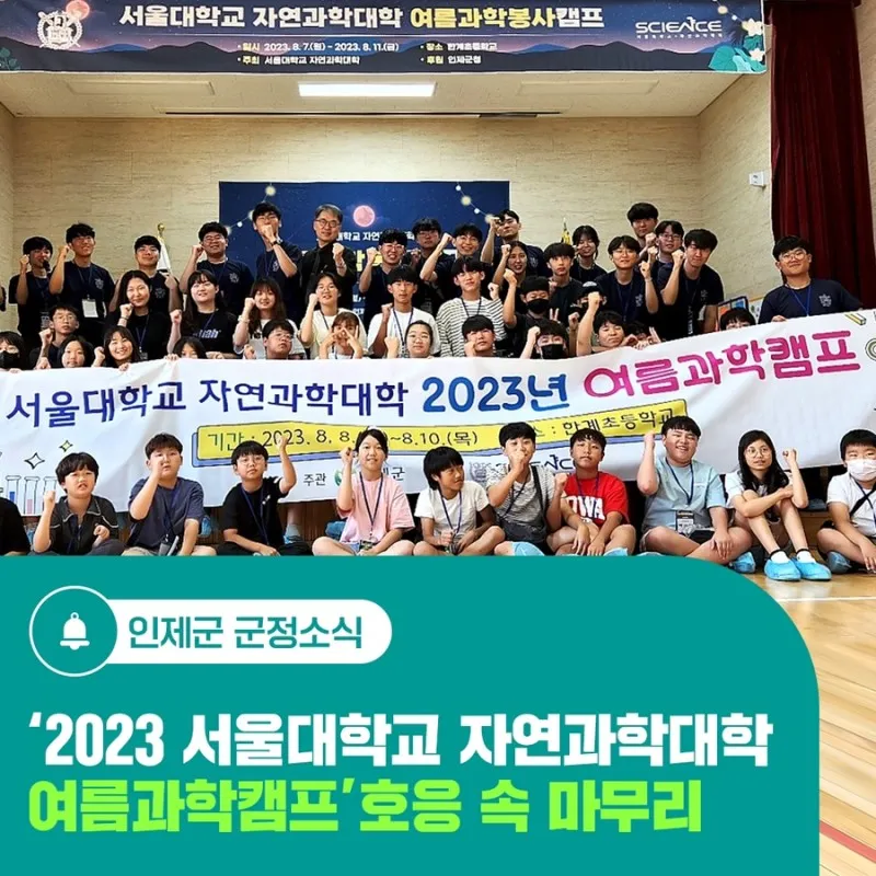 인제군, '2023 서울대학교 자연과학대학 여름캠프' 호응 속 마무리