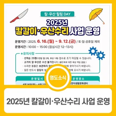 ○ 유의사항 ① 선착순 25명(1인당 칼 2개, 우산 1개) 접수로 조기 마감될 수 있습니다.