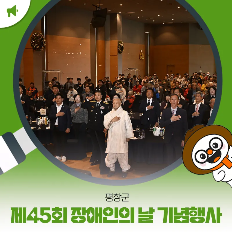 📍 ‘제45회 장애인의 날 기념행사’를 대관령면에 있는 용평리조트 웰리스홀에서 관내 장애인과 가족, 장애인복지시설 종사자, 자원봉사자 등 400여 명이 참석한 가운데 개최했습니다.
