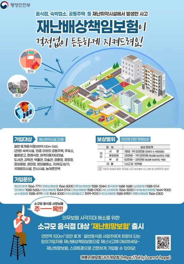 재난배상책임보험 보상 범위는 다음과 같습니다.
