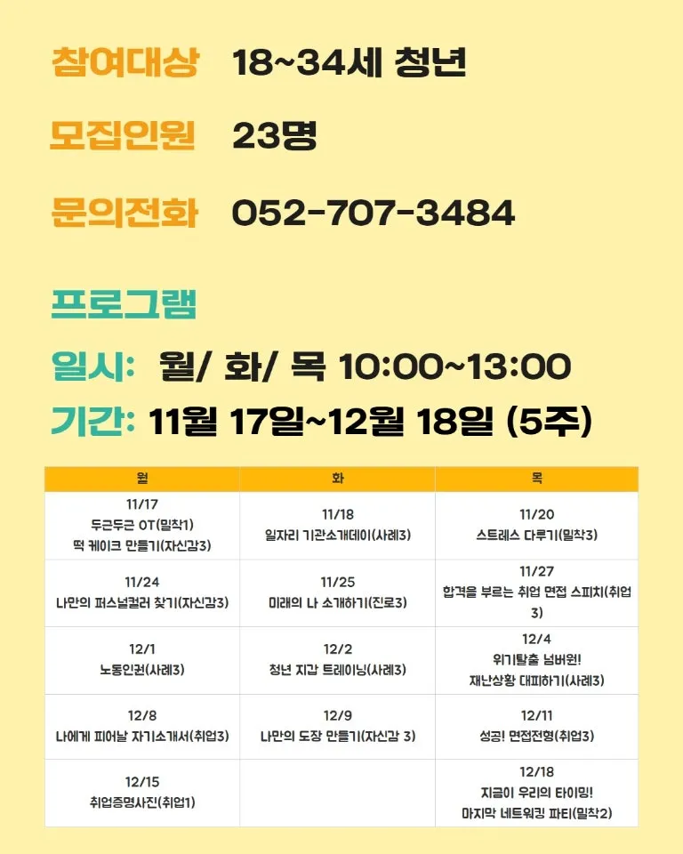 ◎ 문의 : 울산동구청년센터 청년도전지원사업팀 052-707-3484