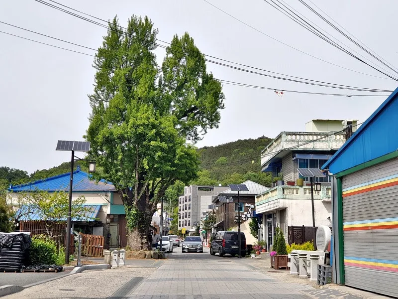청춘거리는 초입에서 원앙공원까지 직선코스를 중심으로 보호수 주변에서 좌우로도 이어집니다. 수령 530년의 은행나무에는 설화도 전해지네요.