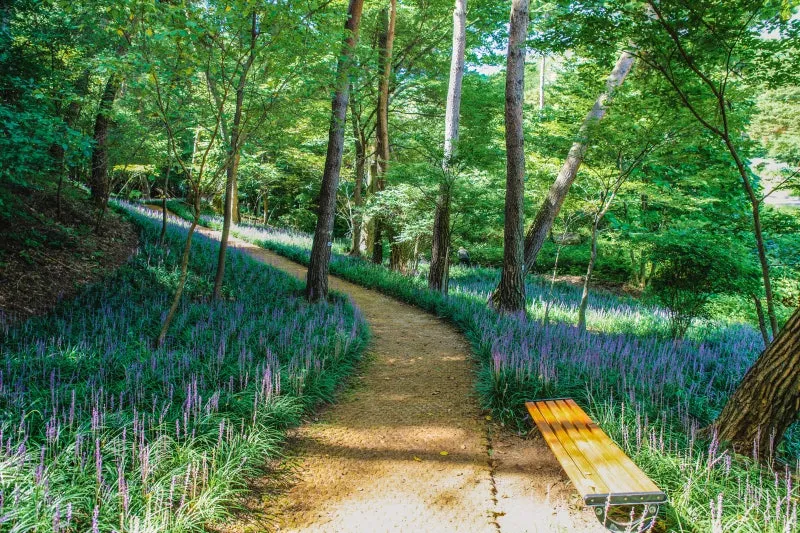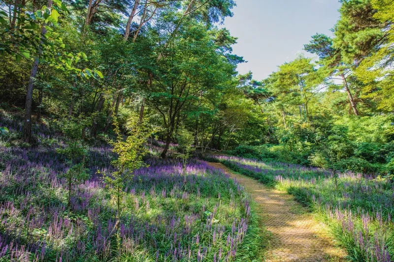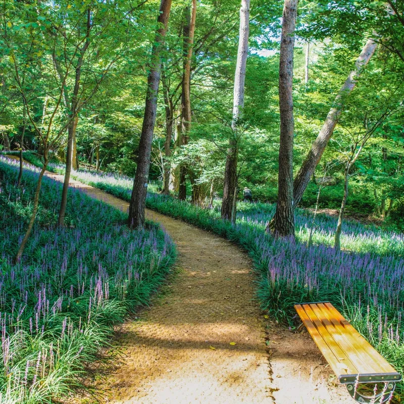 흥주사 소나무 숲은 충남의 아름다운 100대 소나무 숲으로 선정될 만큼 사계절 아름다운 야생화가 피어난답니다. 초가을 피어나는 맥문동뿐만 아니라 비비추와 구절초, 원추리, 기린초 등 계절마다 다양한 야생화를 감상하며 고즈넉한 소나무 숲길을 걸어보세요.