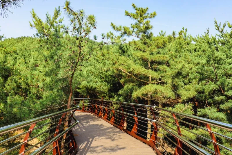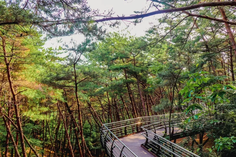 백화산 트리워크는 총 연장 248m의 길지 않은 산책로이지만 하늘로 우뚝 솟아있는 소나무 숲을 더 가까이에서 마주할 수 있어 백화산의 아름다운 풍경을 제대로 만끽할 수 있답니다. 소나무 사이 공중 산책로를 걸으며 향긋하게 뿜어내는 솔내음에 흠뻑 취해보세요.