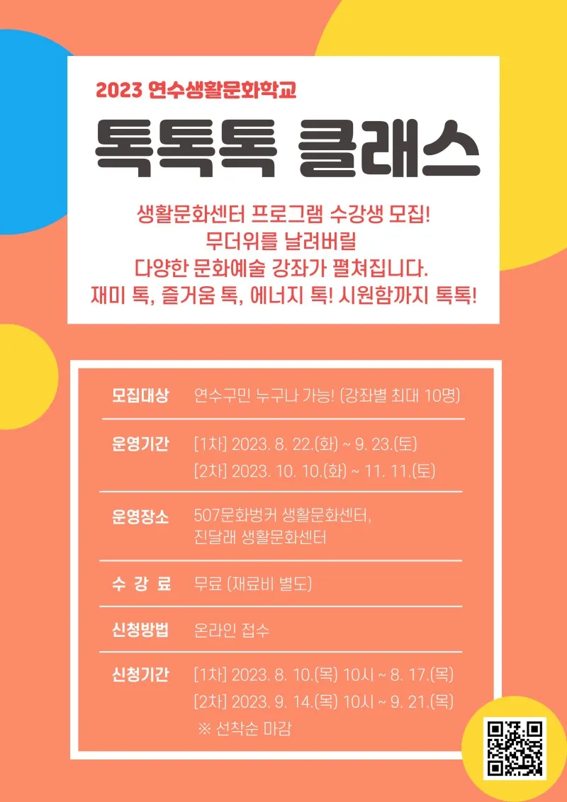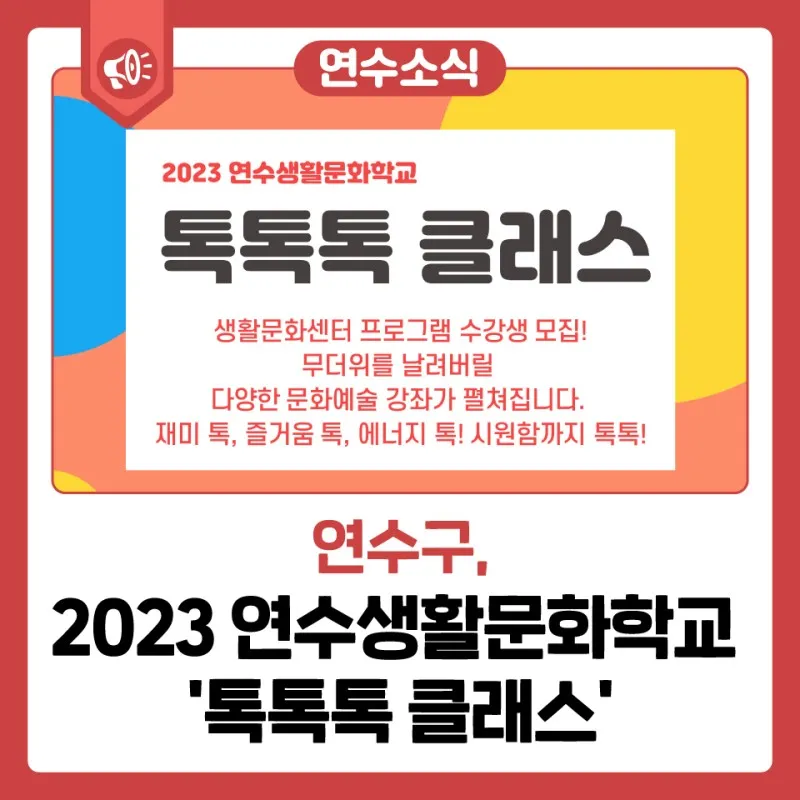 [연수 소식] 2023 연수생활문화학교 '톡톡톡 클래스'