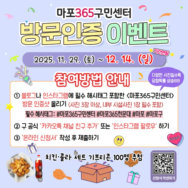[이벤트] 마포365구민센터 방문인증 이벤트 기.간.연.장