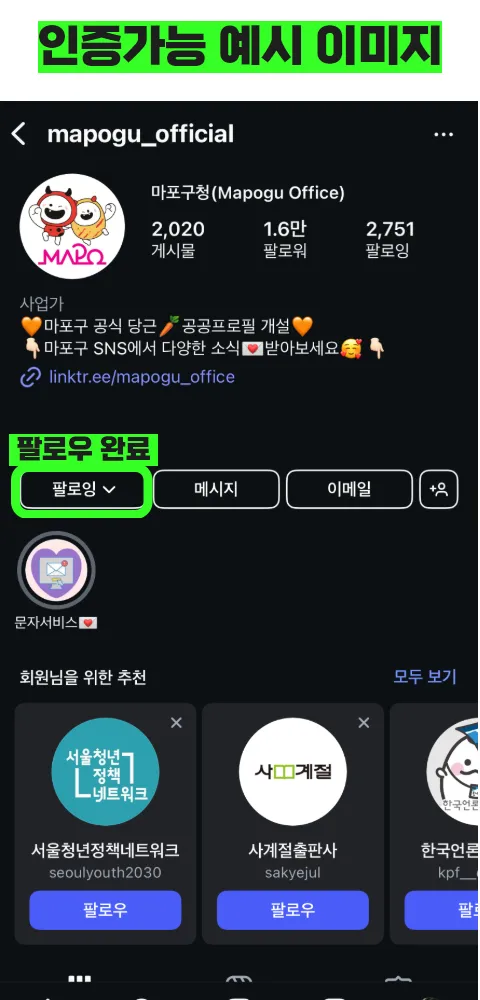 ③ 게시글 링크 및 친구 추가/팔로우 인증사진을 첨부한