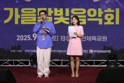 미스트롯3 출연자 천가연 가수의 무대와 다양한 장르를 아우르는 소리새의 통기타 선율로 2025 가을 달빛 음악회는 마무리되었다. 대도시의 거창하고 유명한 대형 가수들이 오는 유명한 음악회는 아니다. 기자도 음악회를 가면서 ‘작은 마을에서 열리는 소규모 음악회겠지’라는 선입견으로 음악회에 참석했다.