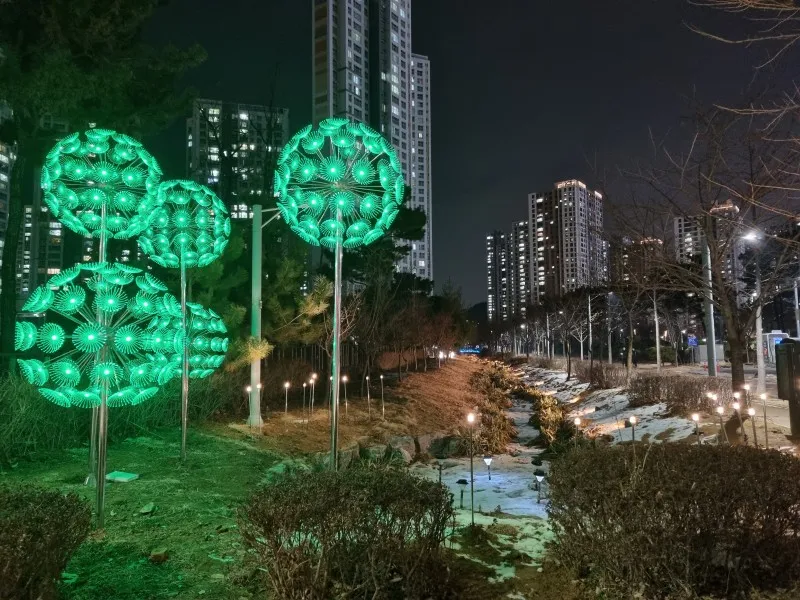 실개천 양쪽 입구에 민들레 홀씨 조명을,