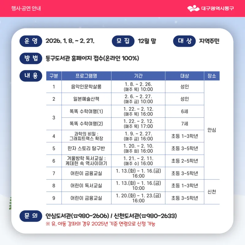 겨울방학을 맞이해 대구 동구민을 위한