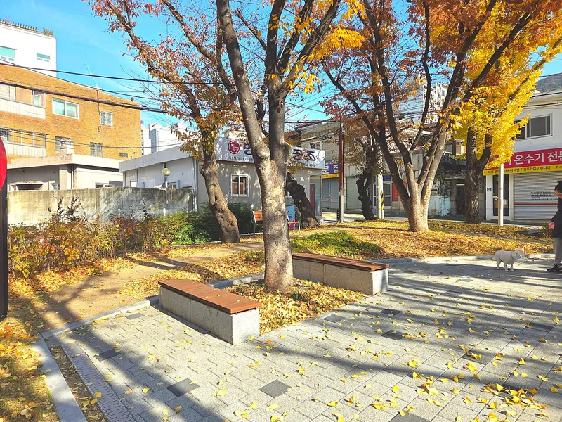 나무 아래에는 벤치가 있어 산책 중 잠시 앉아 그늘에서 쉬며 가을 풍경을 감상하기에도 좋았습니다.