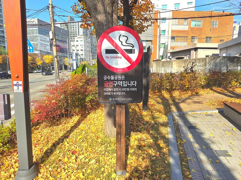 공원은 많은 사람들이 이용하는 공간으로 금연구역으로 지정되어 있었고, 이곳에서 흡연 시 최대 10만 원 이하의 과태료가 부과되니 참고하시면 좋습니다.