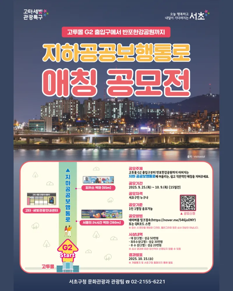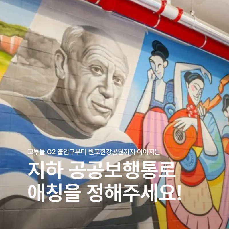 - 공모주제 : 고투몰 G2 출입구부터 반포한강공원까지 이어지는 지하 공공보행통로에 어울리는 쉽고 직관적인 애칭 공모