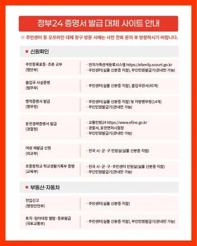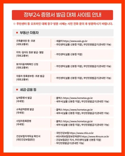 정부24 증명서 발급과 관련한 대체 사이트 안내는