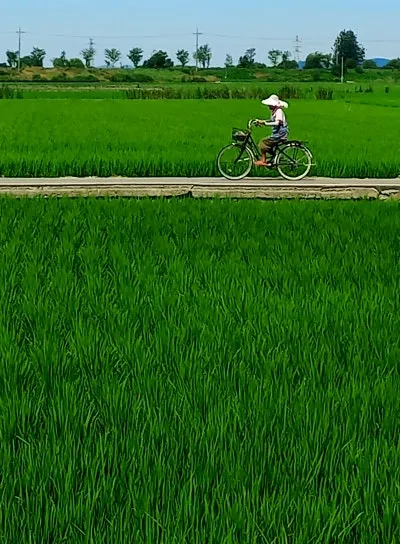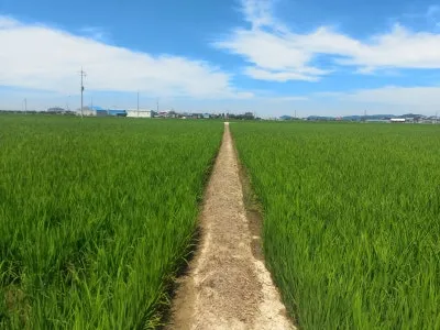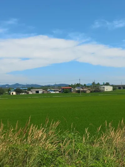 청록의 벼가 싱그럽게 인사하는 논둑길 따라 걸어