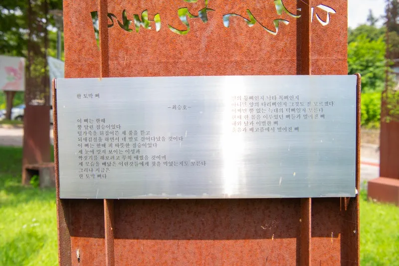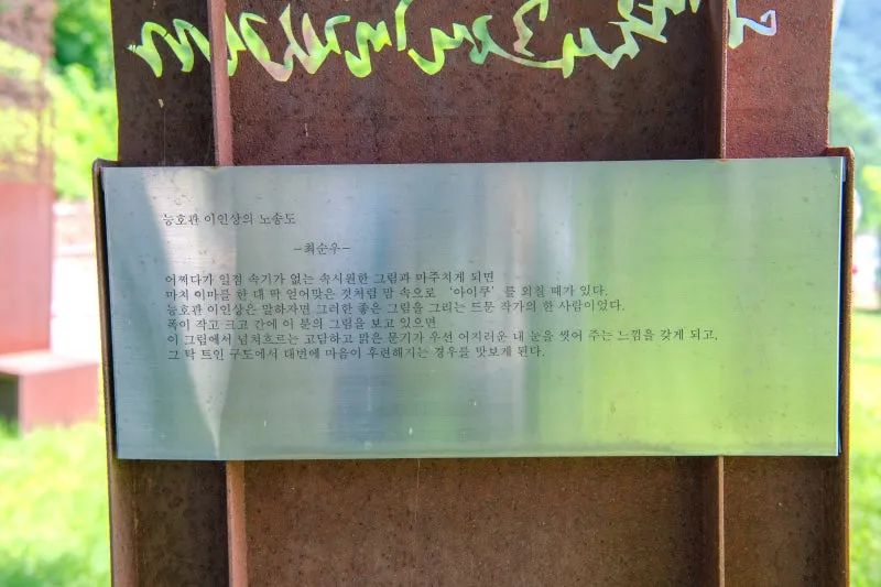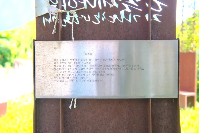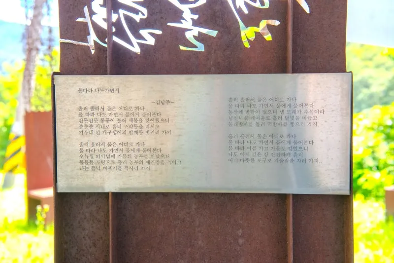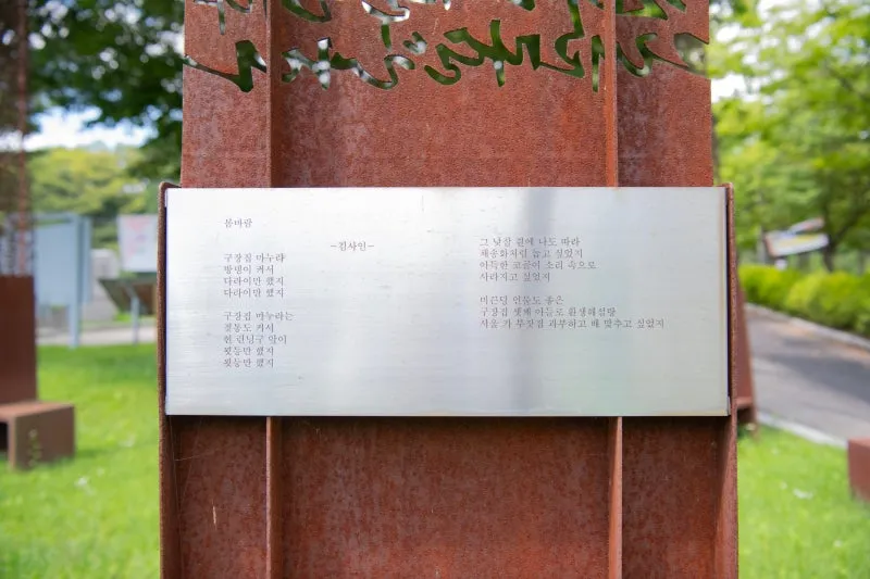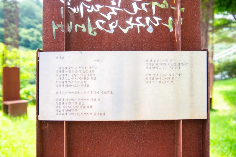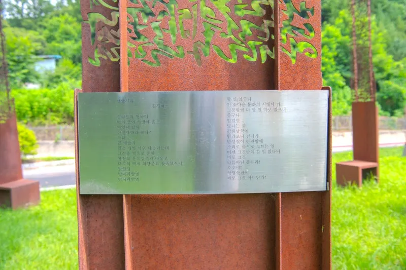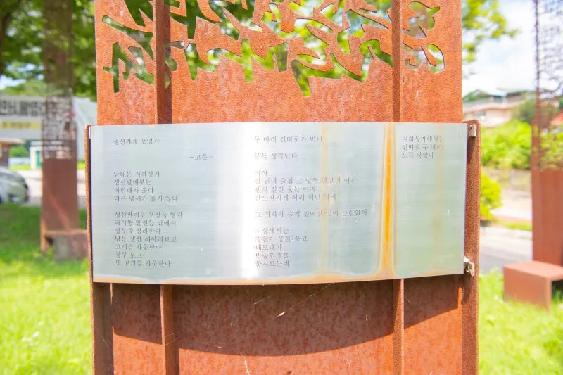 고명한 시인의 작품들이 철판에 새겨져 있어요.