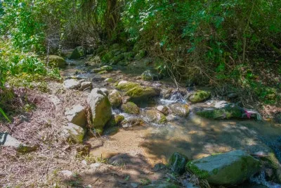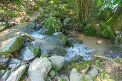 출렁다리로 가서 다리를 가로지르는 지촌천을 촬영해봤습니다.