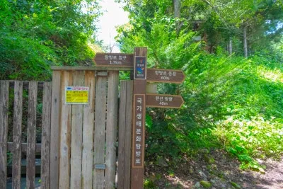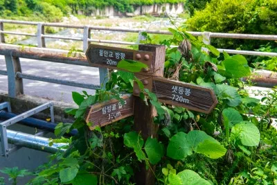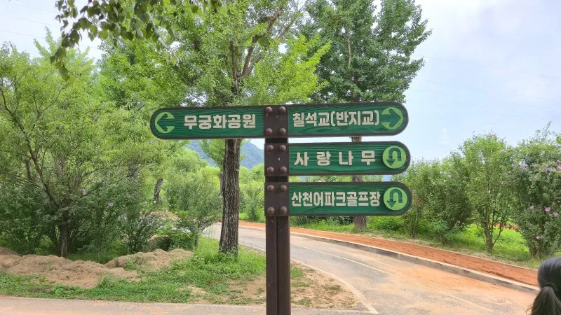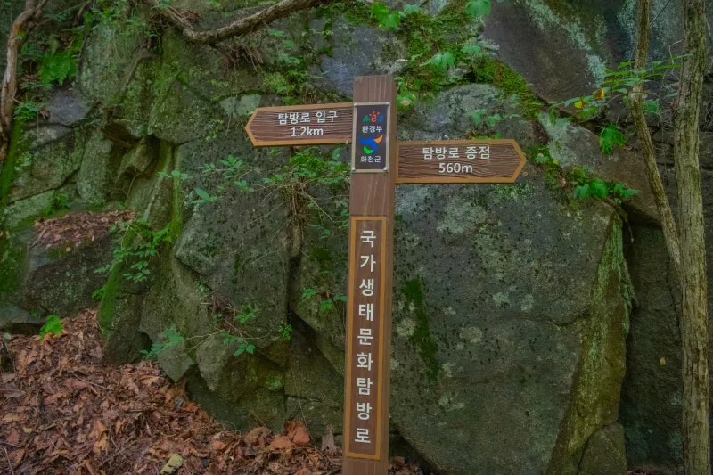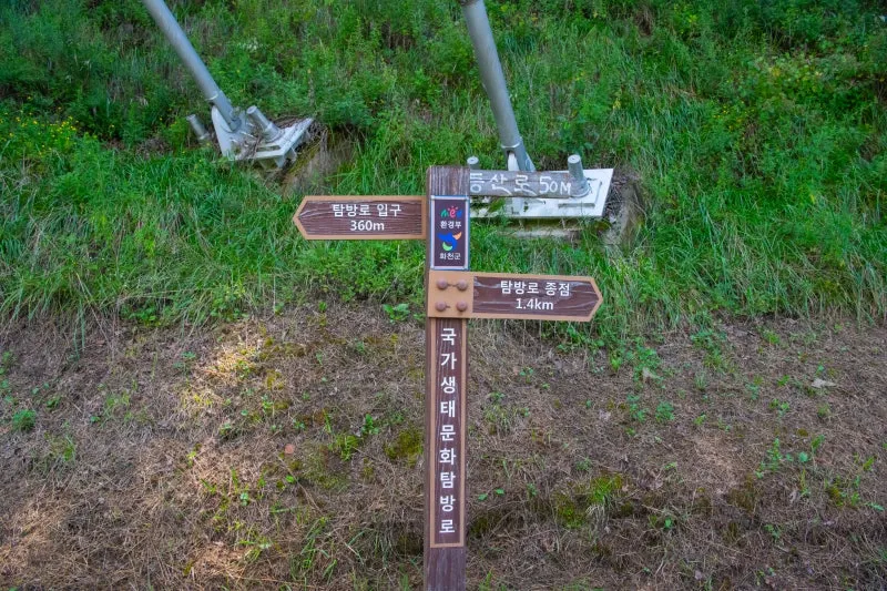 출렁다리를 건너면 있는 탐방로 이정표입니다.