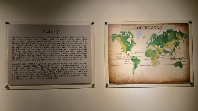 커피체험장 옆에는 원두 종류도 볼 수 있고