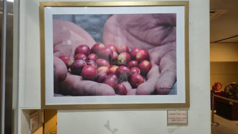 콜롬비아 대사관에서 기증한 커피 열매 사진입니다.