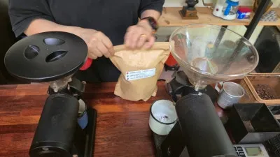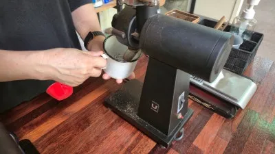 원두를 고르면 바인더로 원두를 갈고