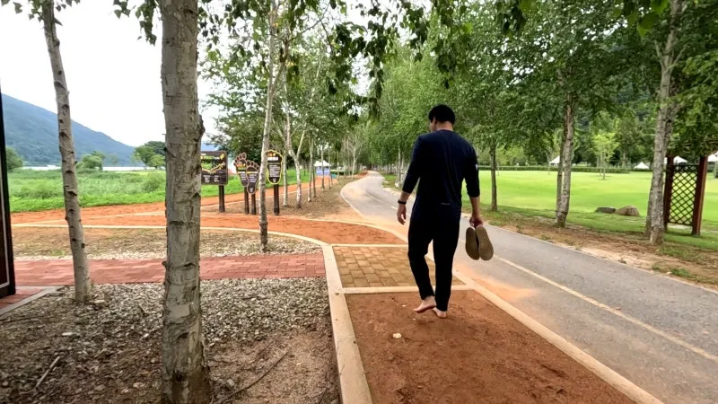 맨발로 걷고 나서 발을 씻을 수 있는 장소에서