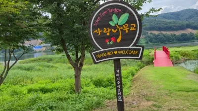칼라풀한 빨간색의 사랑나무교를 건너서