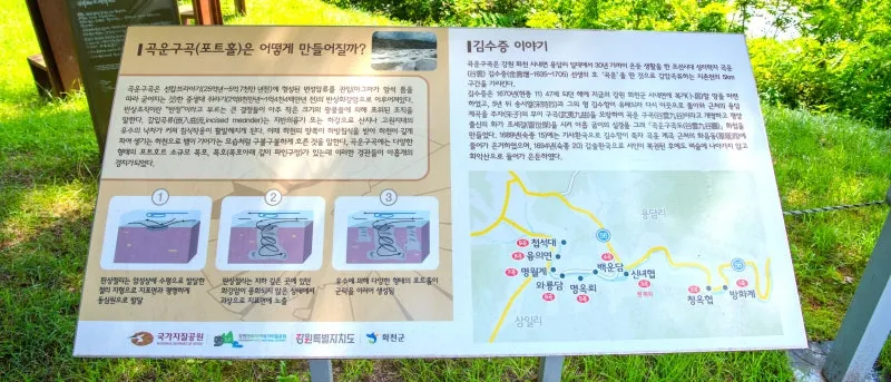 곡운구곡 군데군데에 김수증과 관련된 안내도가 설치되어 있어요.