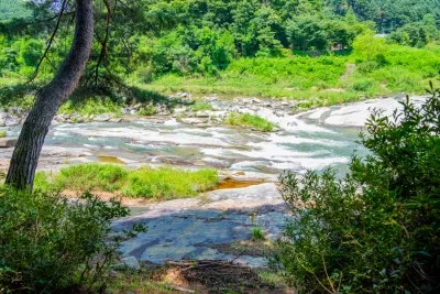 중생대 화강암이 드러난 하상을 따라 빠른 물살이 시원하게 흐르고,