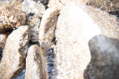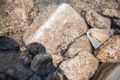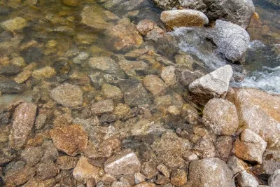 맑은 물소리, 거친 암석의 질감,