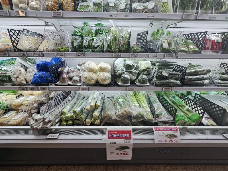 야채들이 깔끔하게 포장되어 손님을 기다리는 중이었죠.