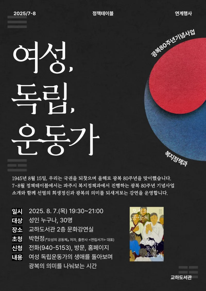 광복 80주년 기념 강연 [여성, 독립, 운동가]