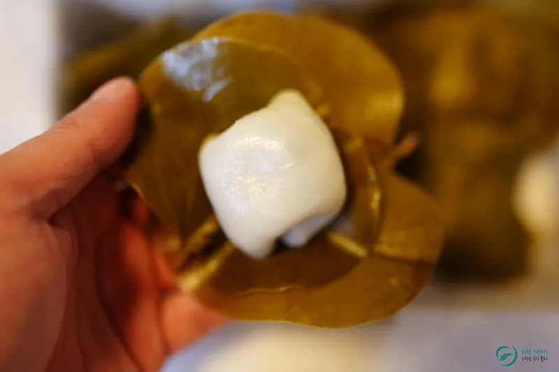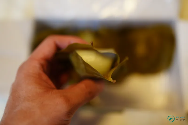 망개잎을 벗기자 은은한 향이 퍼졌고,