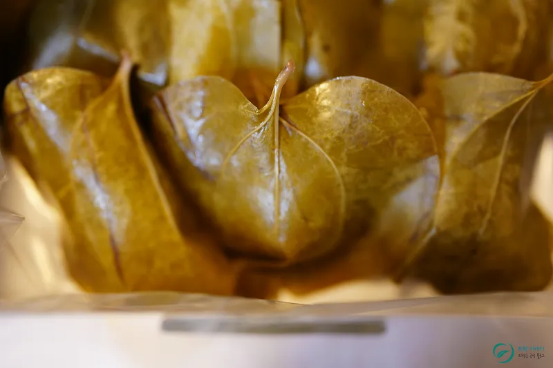 망개잎이 앞 뒤로 2장씩 쌓여져 있었는데요.