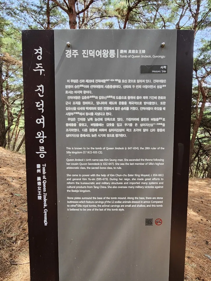 가까이서 진덕여왕의 업적이 담긴 안내표와 함께