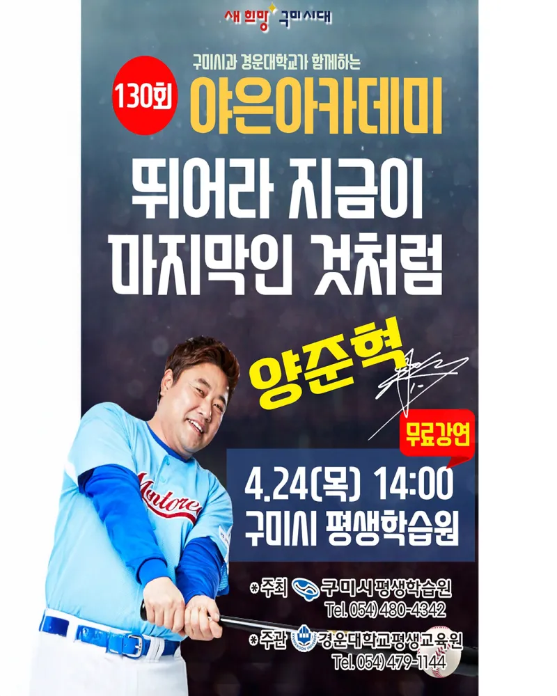 #구미 #구미시 #구미시청 #구미스타그램 #새희망구미시대 #gumi #야은아카데미 #양준혁 #야구 #야구선수 #강연