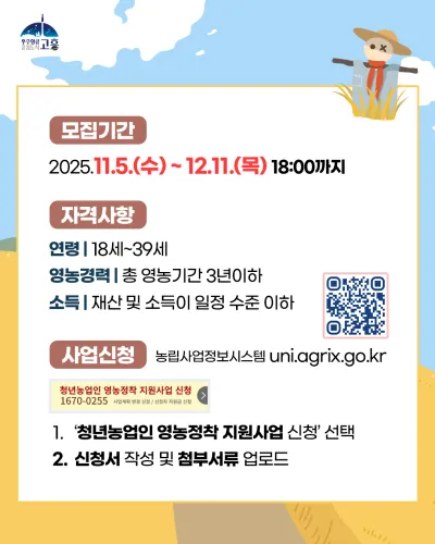 3. 문 의 처: 청년농업인 안내 콜센터(1670-0255), 고흥군농업기술센터 인력육성팀(830-6821)