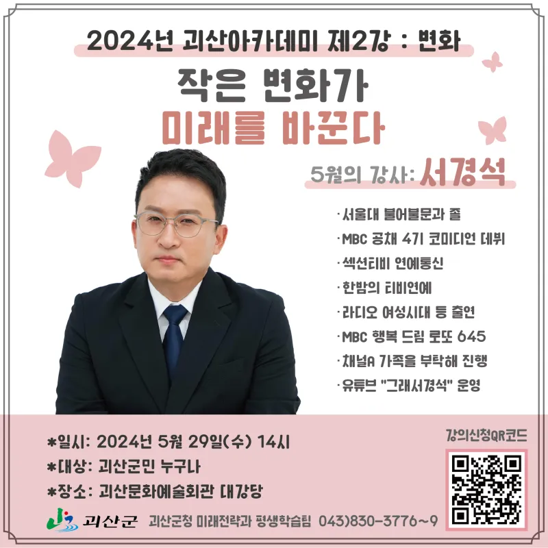 - 문의 : 괴산군청 미래전략과 평생학습팀 ☎ 043)830-3776~9 -