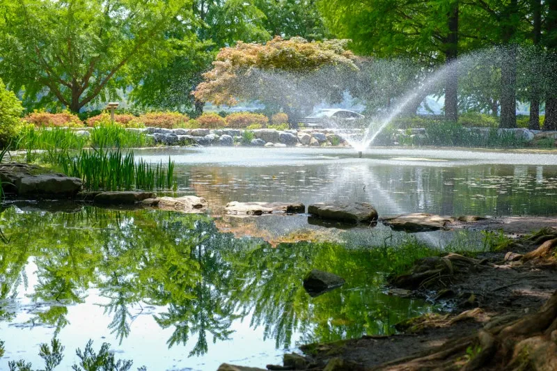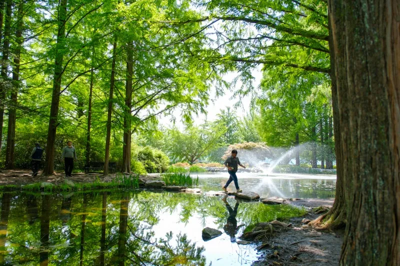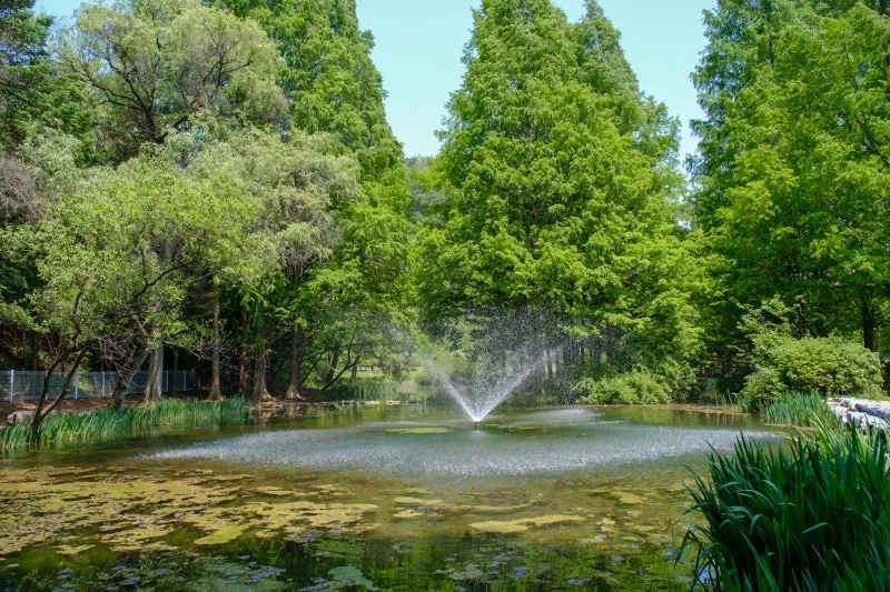 연못에는 분수가 작동해 더위를 식혀주는 것만 같고