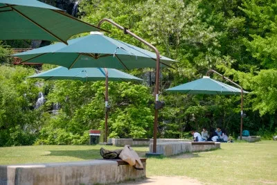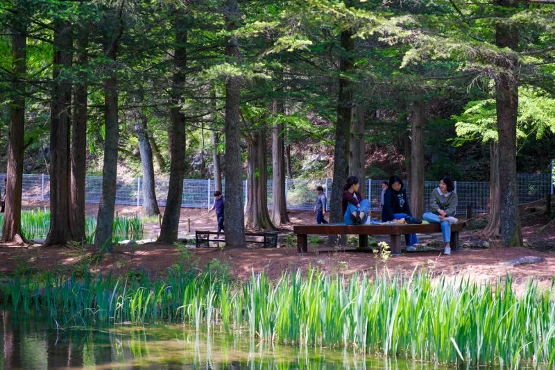 벤치와 평상과 같은 쉼터를 충분히 배치하고 있습니다.