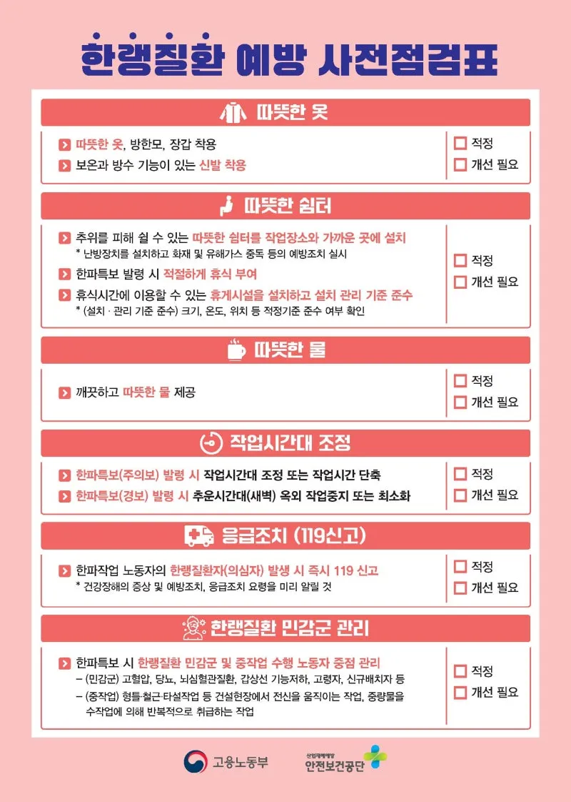 한랭질환 예방 사전점검표