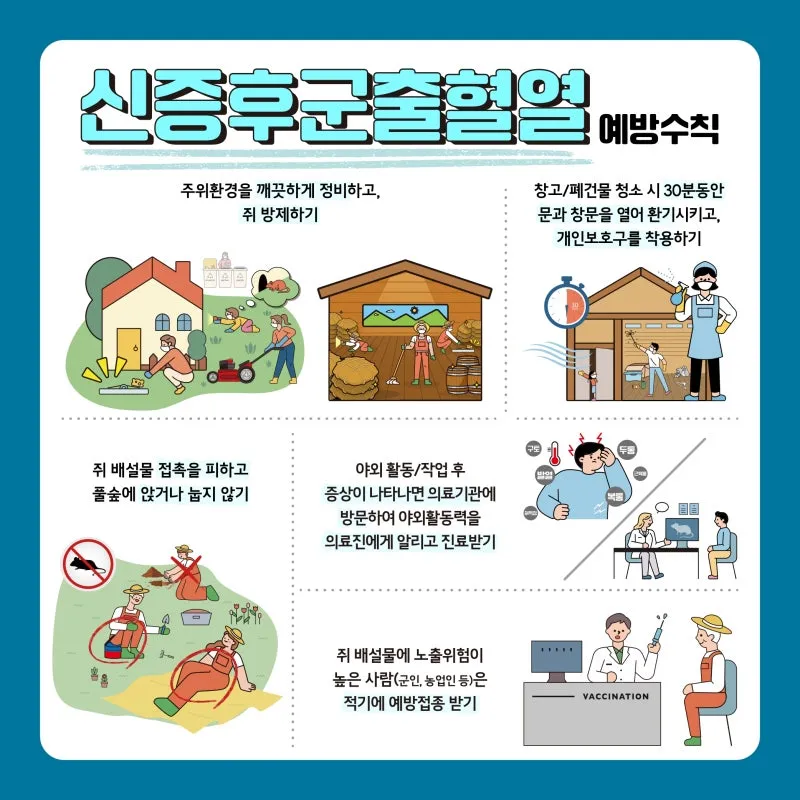 ✔️쥐 배설물에 노출위험이 높은 사람(군인, 농업인 등)은 적기에 예방접종 받기