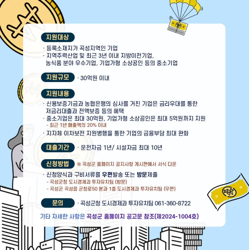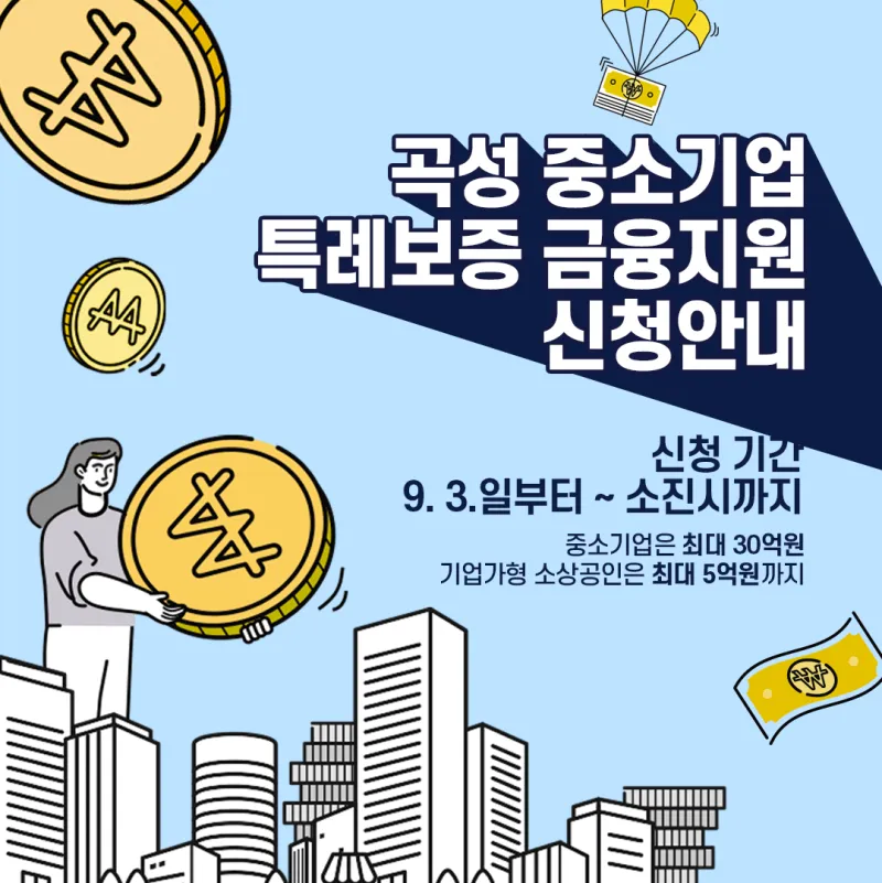 곡성 중소기업은 최대 30억원, 기업가형 소상공인은 최대 5억원까지 지원