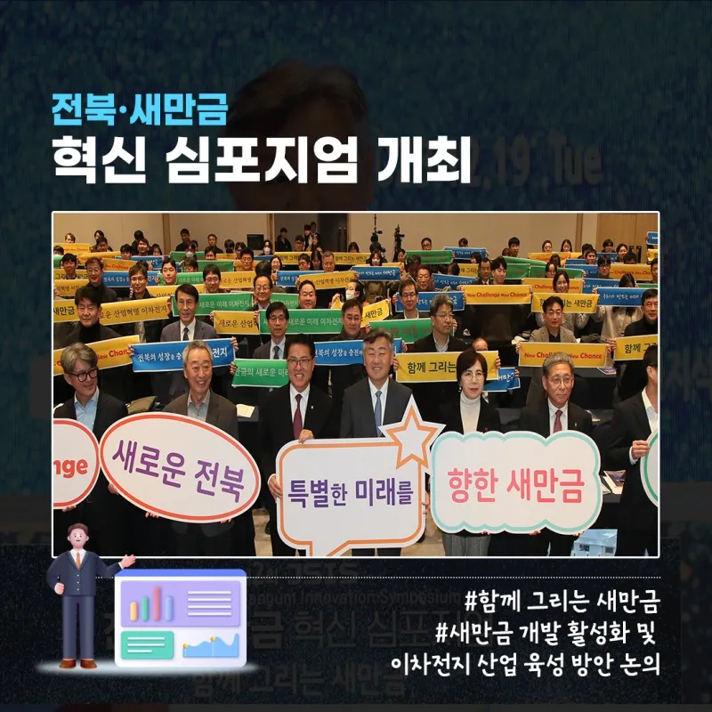 전라북도가 새만금의 새로운 미래발전 전략 구상을 위해 각계 인사와 전문가들이 참여한 심포지엄을 개최했습니다. 함께 그리는 새만금을 주제로 전라북도와 새만금개발청 전북도의회 등이 개최한 이번 심포지엄에는 새만금 개발 활성화와 이차전지 산업 육성 방안 등에 대해 열띤 토론을 펼쳤는데요.