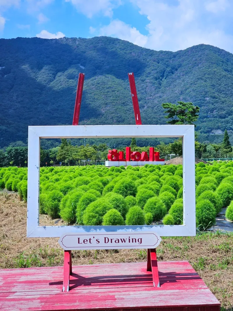 댑싸리 군락지 앞쪽에 마련된 액자 포토존에 서면