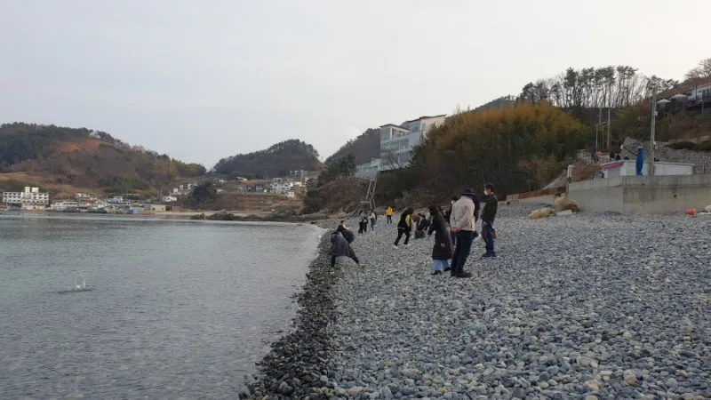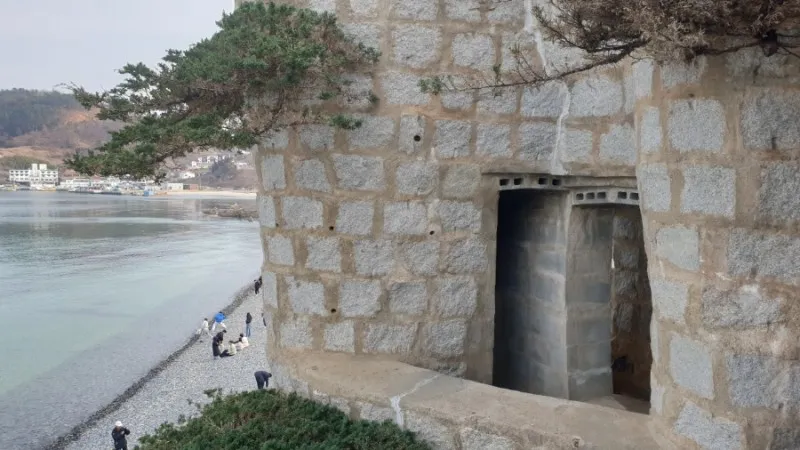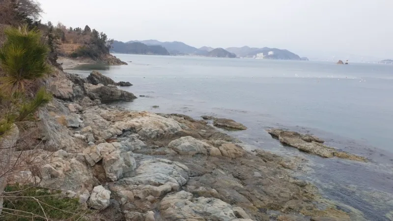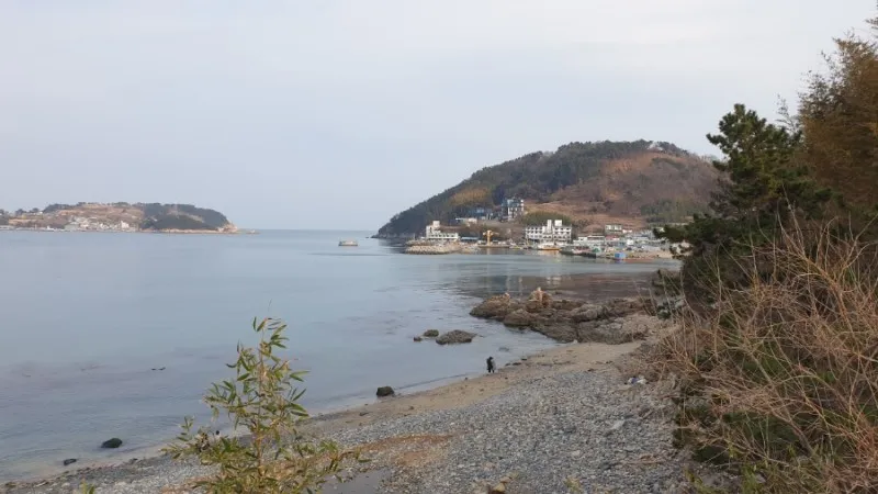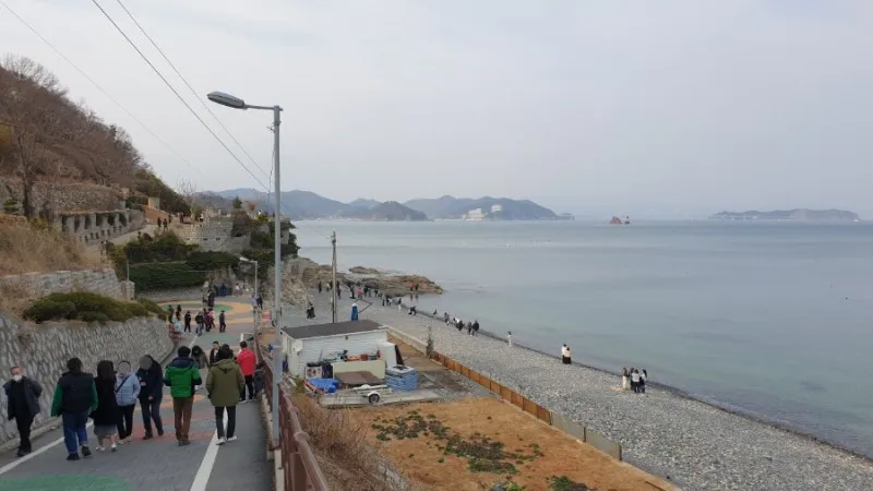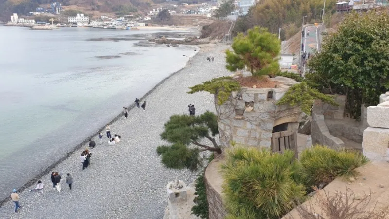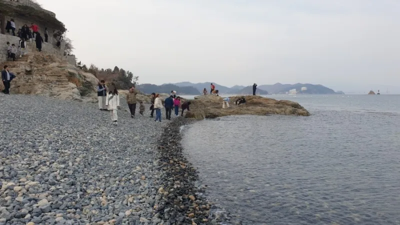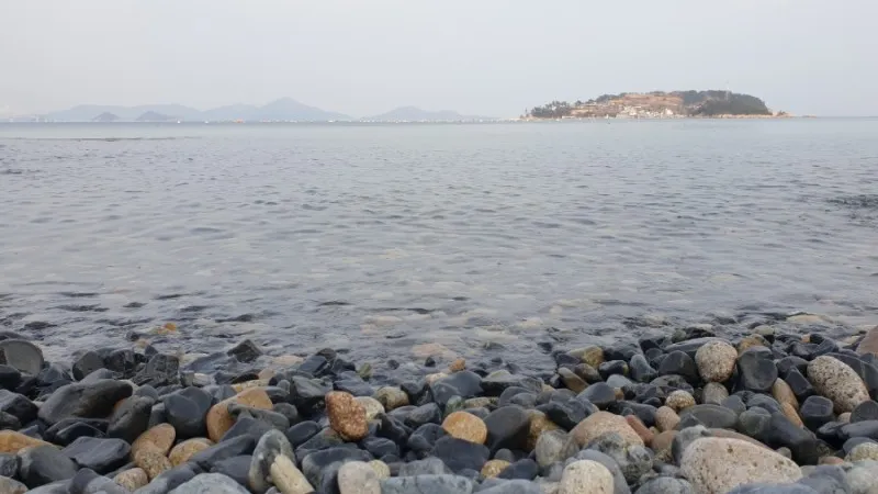 매미성에서 몽돌해변을 찍은 사진인데 정말 평온해 보이는 느낌 입니다.