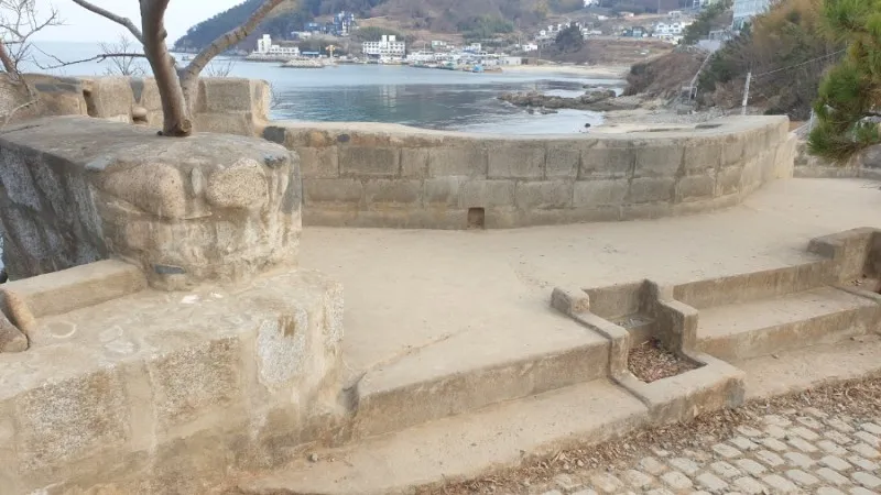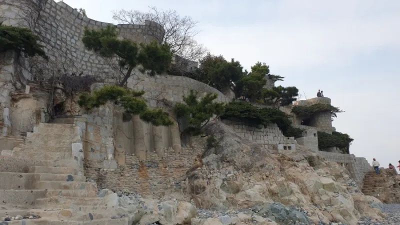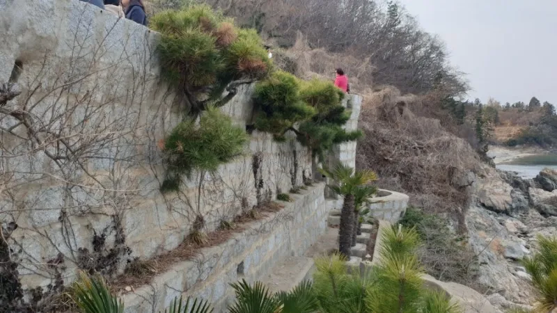 매미성의 가로 길이는 약100미터가 약간 넘는데 성이 끝나는 지점은 갯바위 지대입니다.