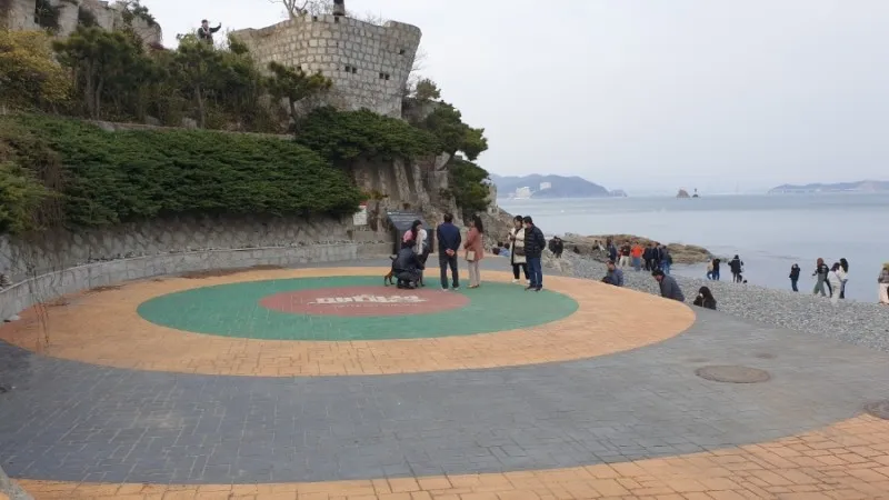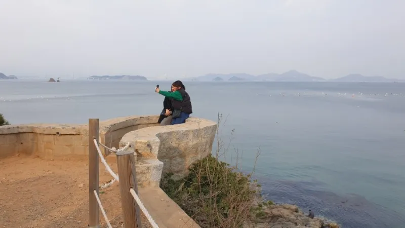 이 곳이 매미성에서 가장 인기있는 포토죤인데 줄을서서 기다리는 분들과는 다르게 강화도에서 거제도로 여행오신 지인분 사진을 이렇게 찍어 드렸습니다. 이 포토죤은 줄을 서 있을 필요가 없지만 나름 멋진 포토존 입니다.