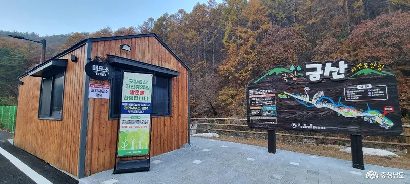 금산휴양림 입구의 목조 안내소는 산뜻한 느낌으로 사람들을 맞이했다. 고요한 숲속의 금산자연휴양림은 금산의 새로운 명소로 이름을 알리기 시작했다.