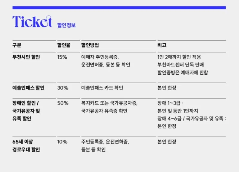 R석 13만원 / S석 10만원 / A석 8만원 / B석 6만원 |
